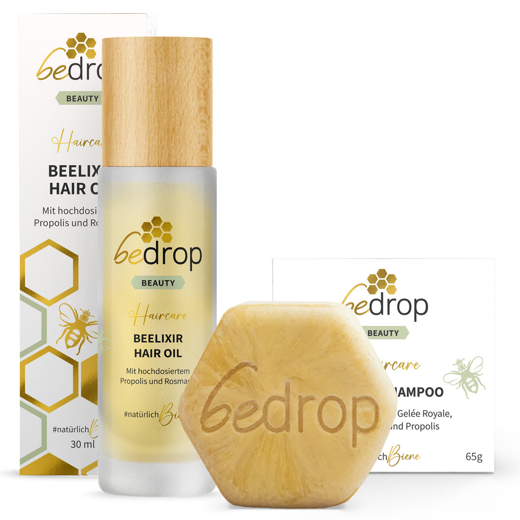 La pappa reale, nota anche come gelatina reale, è la preziosa secrezione che le api producono per nutrire la loro regina e le larve. Con la sua consistenza appiccicosa e il suo colore bianco latte, è ricca di sostanze nutritive che non solo aiutano l'ape regina a raggiungere un'incredibile fertilità e longevità, ma può anche offrire un grande valore aggiunto nella nostra vita quotidiana. La pappa reale può contribuire a rendere i capelli umani lucidi ed elastici. Da noi potete acquistare una pappa reale sostenibile e rispettosa delle api, sviluppata appositamente per la cura dei vostri capelli.