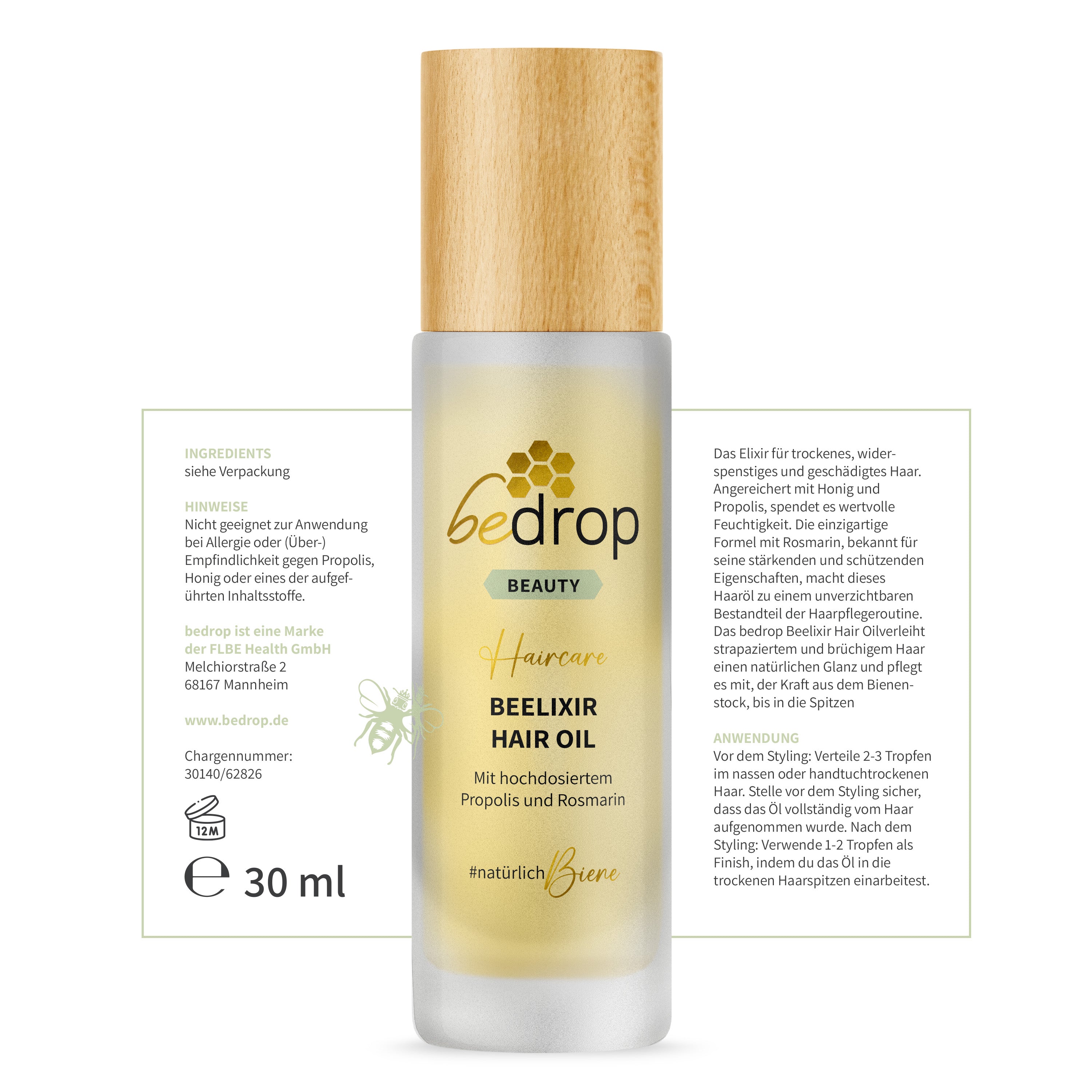 Si consiglia di utilizzare il nostro HAIR CARE SET come cura complementare alla routine per la pelle soggetta a eczemi.Shampoo alla pappa reale e OLIO PER CAPELLI BEELIXIR