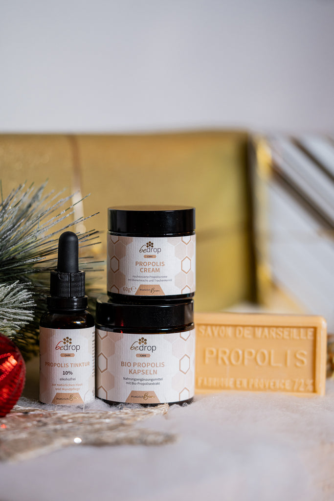Tutto ciò che voglio per Natale è... Propoli! La propoli offre interessanti benefici ai vostri cari: La propoli può essere utilizzata in molti modi per sostenere la pelle, il corpo e il benessere, soprattutto in inverno.