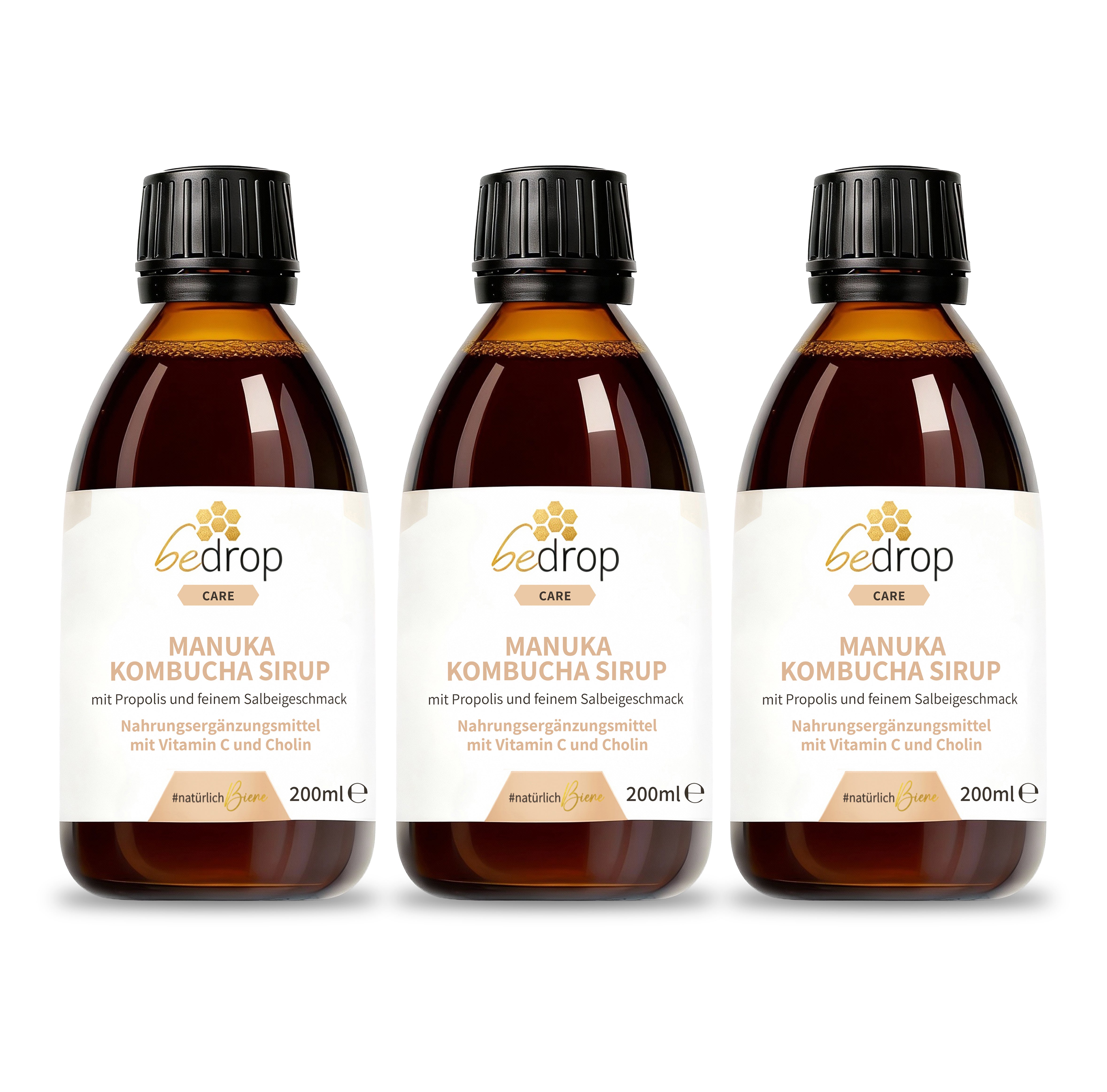 In Kombination mit Manuka Honig und Propolis sorgt fermentierter Kombucha für eine harmonische Rezeptur.