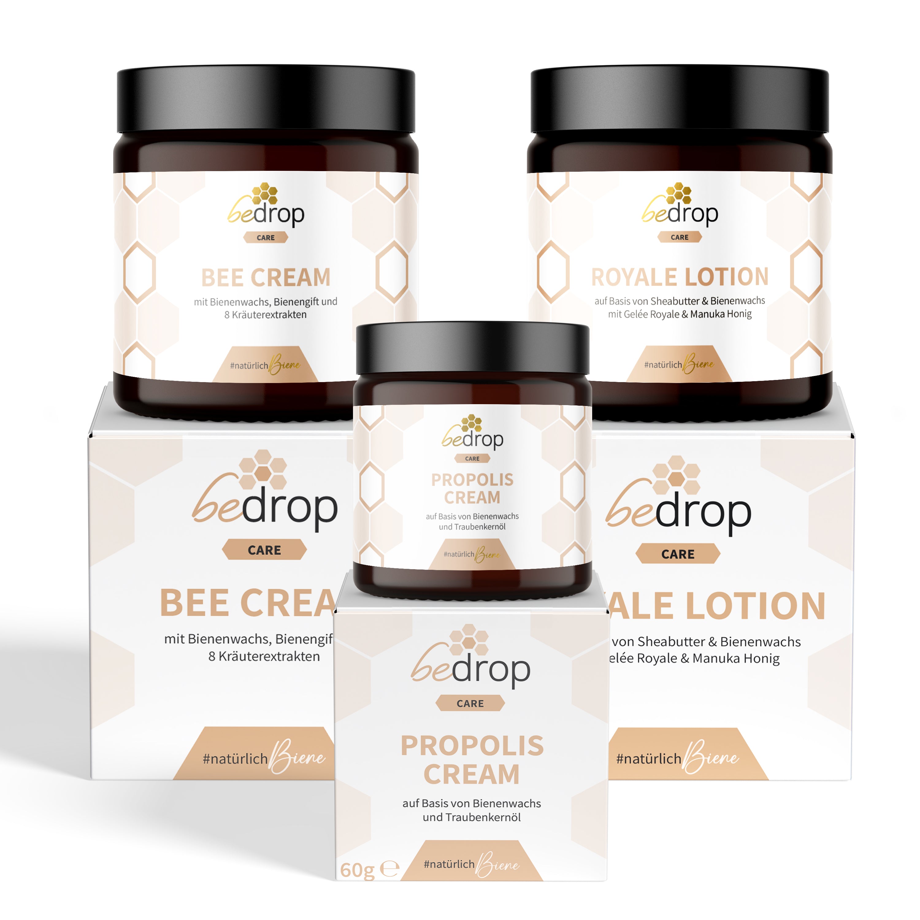 Set per la cura della pelle | Bee Cream (unguento al veleno d'api) + Propolis Cream (unguento alla propoli) + Royale Lotion (lozione per il corpo)
